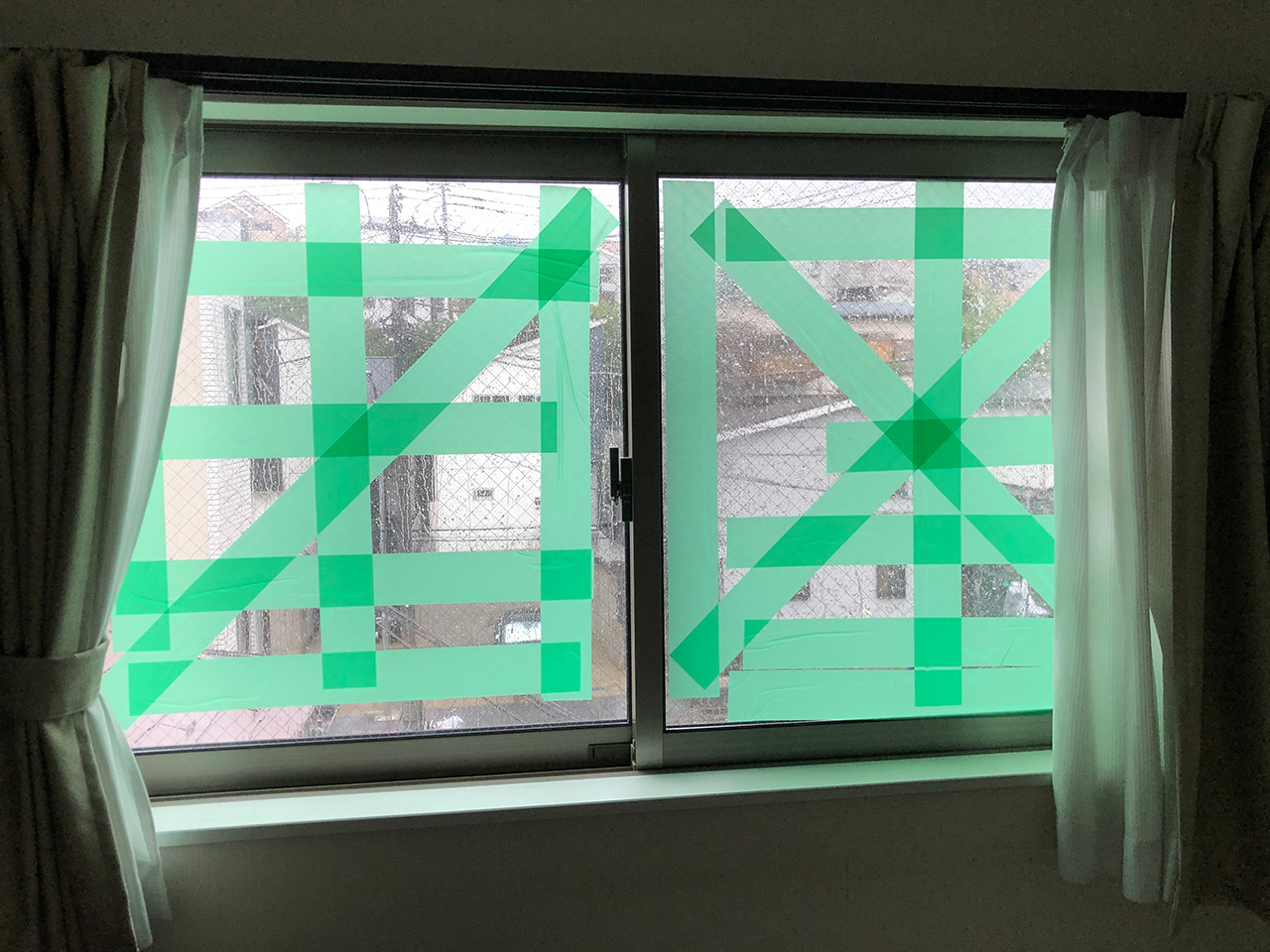 あとで調べたら、自宅の窓は網入りの合わせガラスなので、こうやって養生したところで、あまり変わらないんじゃないの? ということに。今後の対策のこともあるので、施工した工務店に訊いておこうと思います。一つ後悔しているのは、防犯上必要ないだろうと思い、1階以外の窓にシャッターをつけなかったことですね。風でモノが飛んでくるなんてことは、4年前の施工時には微塵にも思いませんでしたから。アルミサッシのシャッターを後付けすることを検討しようかしら。