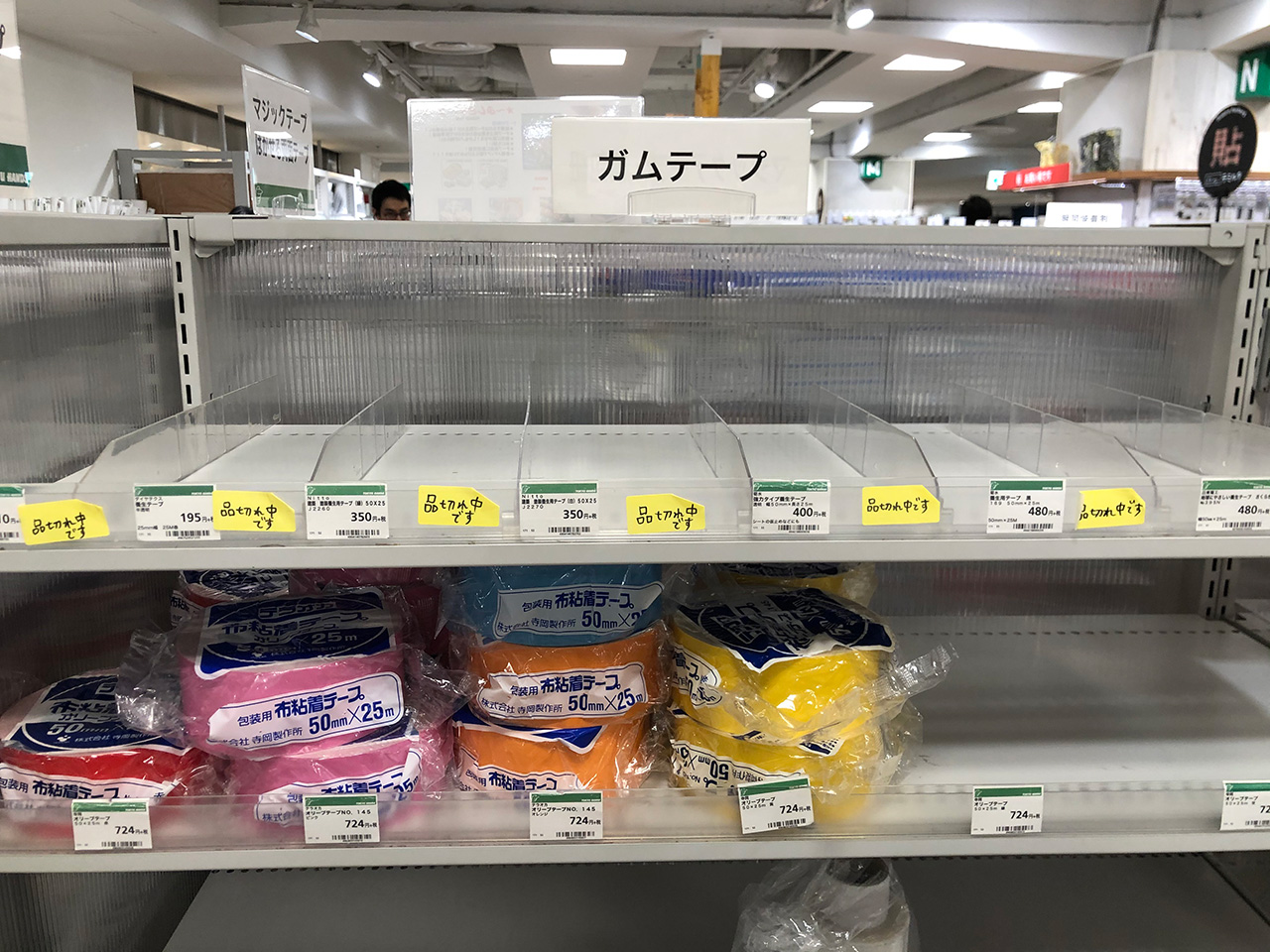 台風15号の暴風を経験した市井の人々は、迫りくる台風19号に備え、窓ガラスに貼る養生テープを探し回る羽目になった。かく言うmenehuneもその一人。完全に15号の経験と、その後のネットを中心とする煽りにやられてしまったのだ。しかしどこのホームセンターを巡っても養生テープは完売。どうしよう。menehuneがたどり着いたのは。。。