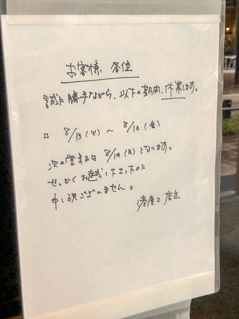 2019年2月4日に、港区虎ノ門の超人気店立ち食いソバ屋「港屋」は閉店した。