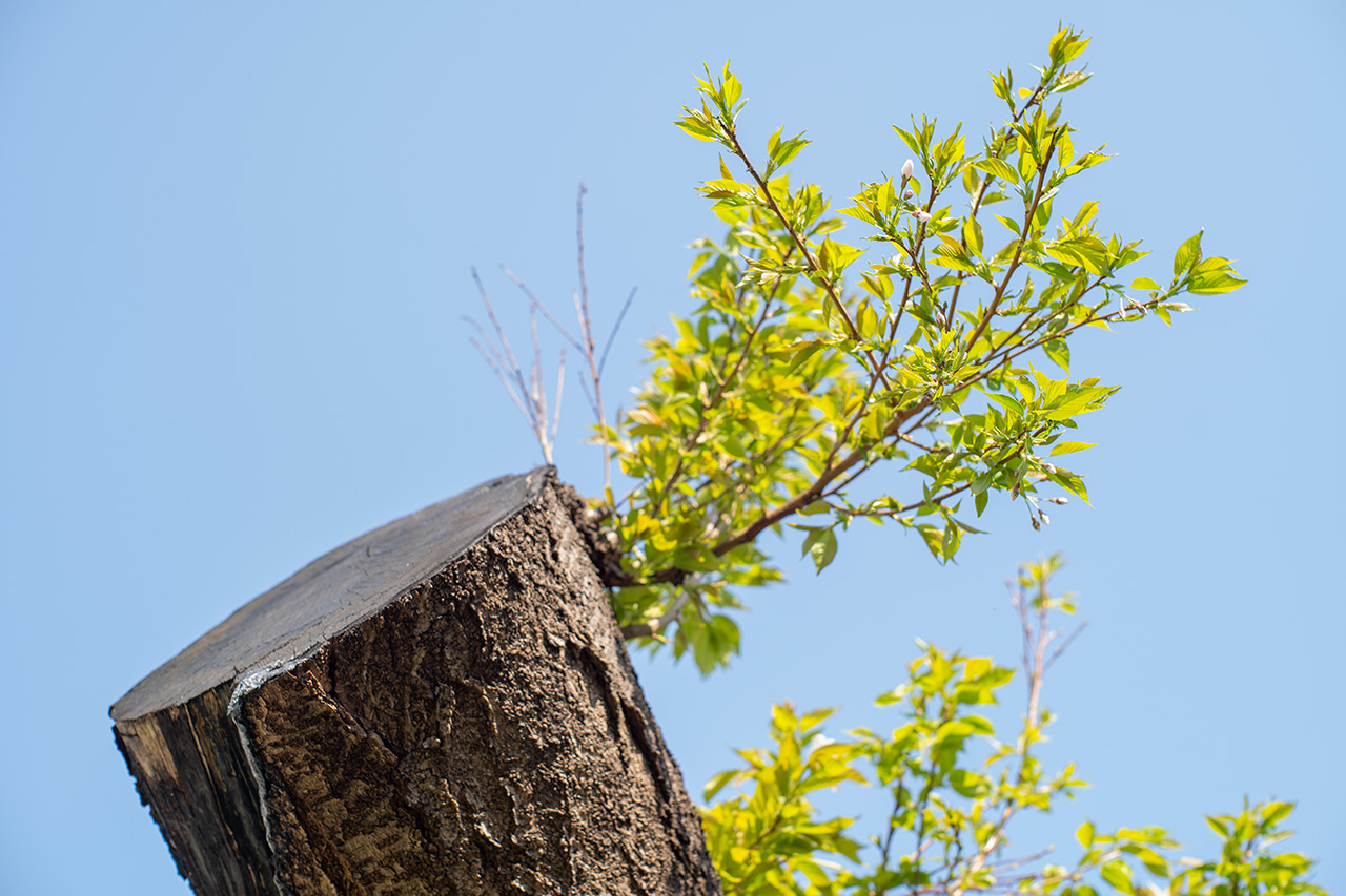 2020年4月4日、伐採から最初の春。樹の様子を見てきました。